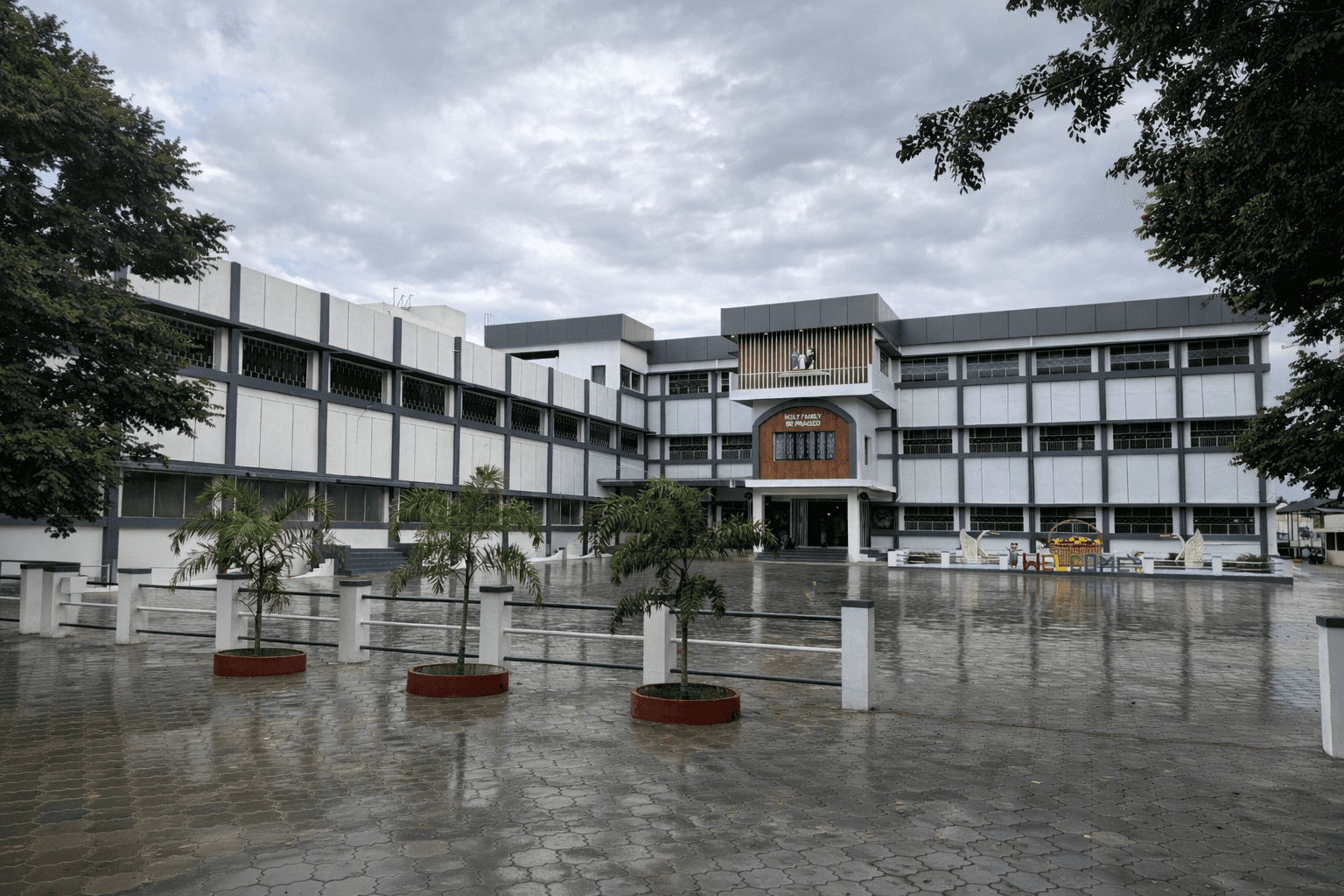 The Arokia Matha Matriculation School project involved architectural enhancement and stage redevelopment to elevate the campus presence. With façade refinement, structural upgrades, custom signage, and integrated lighting, the design strengthens the school’s identity while preserving its spiritual character and institutional dignity.